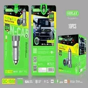 Cargador de auto Gerlax plateado GC-15S, un accesorio esencial para tu carro que te permite cargar tus dispositivos mientras conduces. Con diseño compacto y elegante, este cargador de auto es la solución perfecta para mantener tus dispositivos siempre listos para usar en tus viajes por carretera.