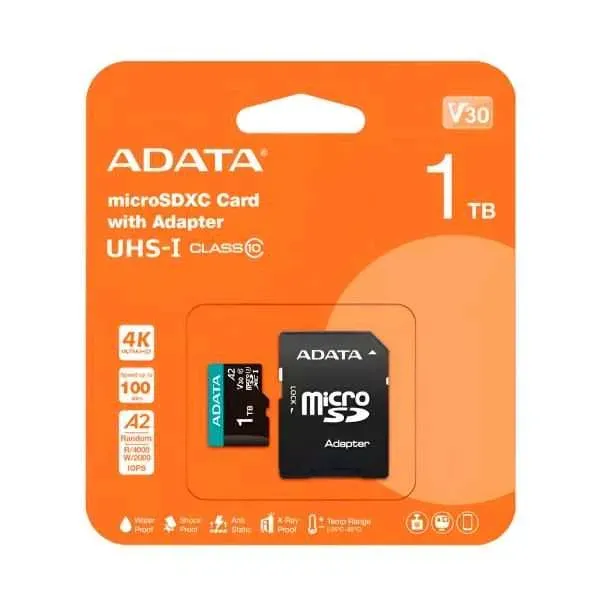 ¡Obtén la Memoria Micro SD de 1TB de Adata, compatible con Nintendo, drones, Go Pro y grabación en 4K! Almacena tus momentos favoritos con esta tarjeta de alta capacidad. Ideal para entusiastas de la fotografía y video. ¡No te quedes sin espacio para tus aventuras!