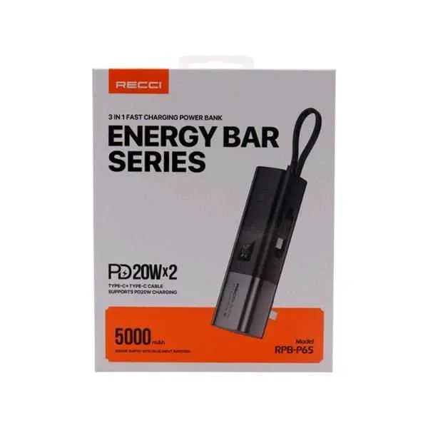 El Power Bank RECCI RPB-P65 de 5.000mAh es un cargador portátil y batería externa recargable, ideal para mantener tus dispositivos cargados en todo momento. Con este dispositivo de carga, nunca te quedarás sin batería cuando más lo necesitas.
